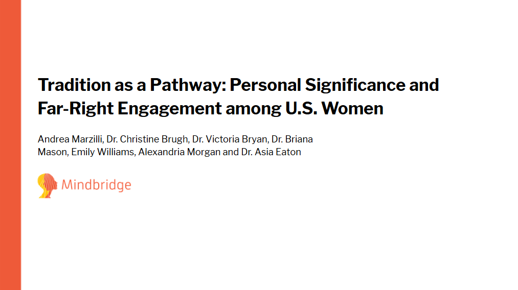 Click on the image above to download our data blitz presentation, Tradition as a Pathway: Personal Significance and Far-Right Engagement among U.S. Women (Marzilli et al., 2026). In this research, we sought to understand the role of significance and variability in far-right women's ideologies through both qualitative interview data and quantitative survey data.